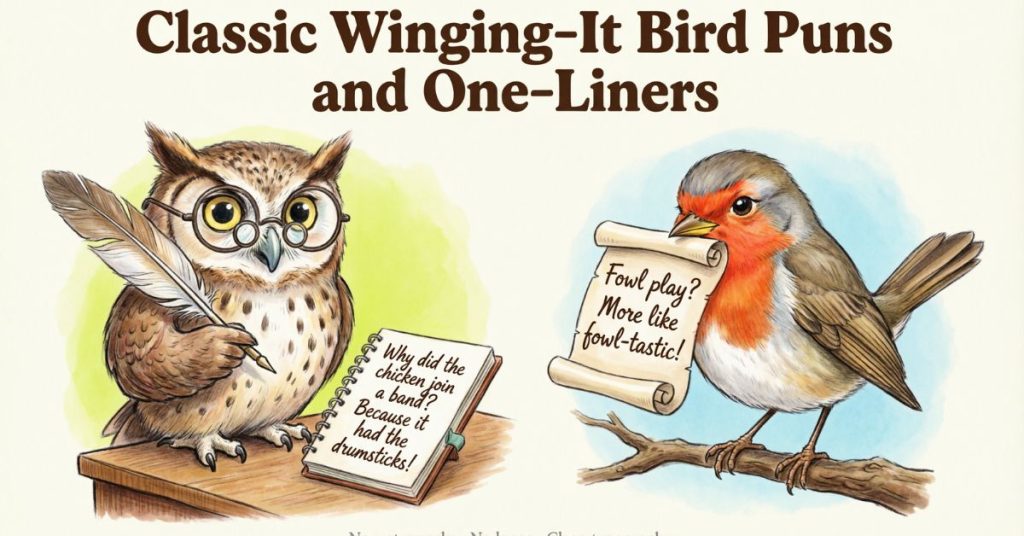 All of which is to say: bird puns are not merely a flight of fancy. They are a deeply rooted cultural tradition with real psychological heft and historical staying power. Whether you are looking for the perfect Instagram caption, a birding team name, or a one-liner to break office ice, you have landed in the right nest. Before you dive into our complete collection of bird puns, why not discover your own Avian Alter-Ego with our AI Pun Generator because knowing whether you are a raven or a robin changes everything about how you pun.