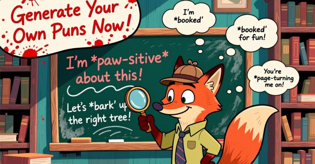 Want a custom pun tailored to your name, your dog’s name, or your next caption idea? Create an endless stream of wordplay with our smart, creativity-boosting pun generator. Whether you’re crafting social content, cards, or brand slogans, this tool instantly produces the perfect pun on demand.